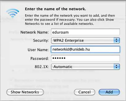 - User Name: networkid@unideb.hu