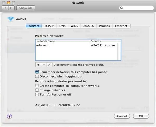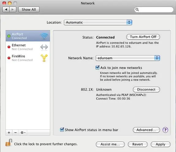 Mac OS X EDUROAM settings