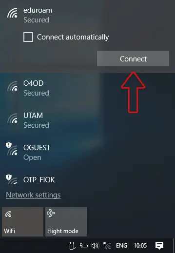Select the eduroam network in the list, and select the "Connect" button.
