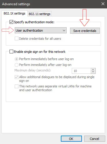 In the " Advanced Settings" window set the authentication method to "User authentication".