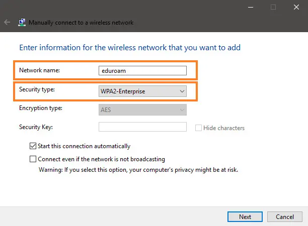- Network name: eduroam