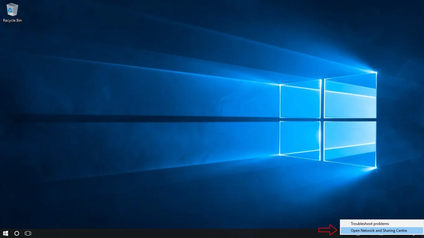 Select the option "Open Network and Sharing Center".