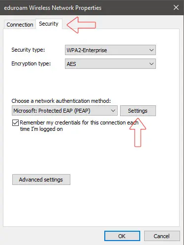 Windows 10 EDUROAM settings