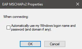 In the "EAP MSCHAPv2 Properties" window remove the tick at the "Windows log-on name .... " option.