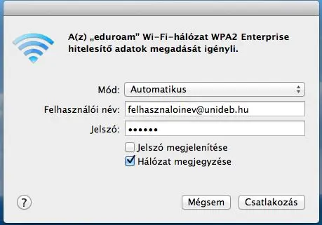 - Add meg a felhasználónevet következő formában: halozatiazonosito@unideb.hu!