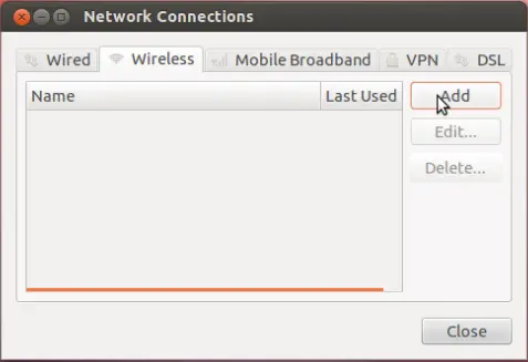- Kattints a Vezeték nélküli hálózatok(Wireless) fülre, ezen belül pedig a Hozzáad / Add gombra a jobb oldalon.