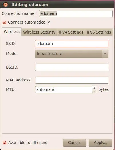 - A BSSID-t és MAC címeket üresen kell hagyni, valamint az MTU értéke maradjon az alapértelmezett automatikus.