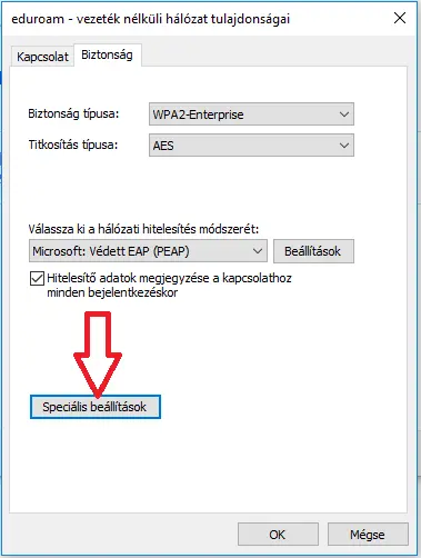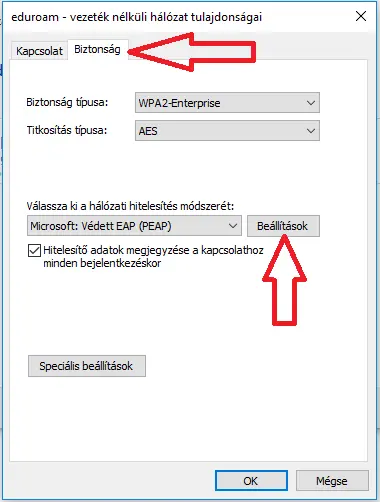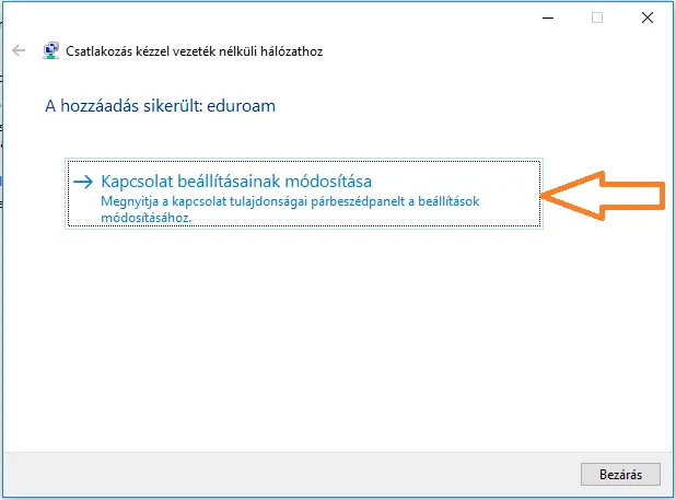 A következő beállításokat kell végrehajtani a Windows 10 rendszeren az EDUROAM WiFi hálózat használatához