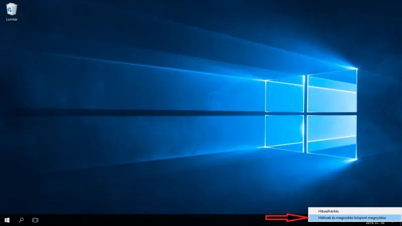 Válaszd ki a "Hálózati és megosztási központ megnyitása" lehetőséget.